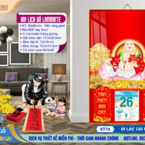 Bìa Lịch Gỗ 40×60 Laminate – KT74 – Di Lặc Tài Lộc
