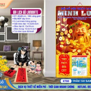 Bìa Lịch Gỗ 40×60 Laminate – KT80 – Thần Tài Ban Phúc