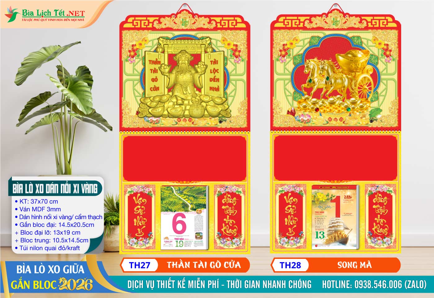 ✨ Bìa lò xo giữa 37×70 dán nổi – lựa chọn sang trọng cho bộ lịch bloc cao cấp năm 2026.
