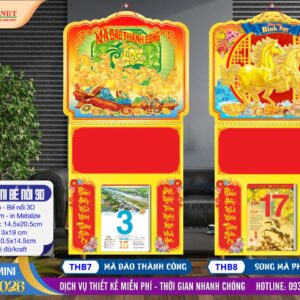 Công Ty Lịch Tết Sài Gòn phân phối Bìa Lò Xo Giữa Mini (30×65 cm) dịp xuân Bính Nọ. Bìa Lò Xo Giữa Mini Bế Nổi 3D có nhiều mẫu được ưa chuộng như: Phúc Lộc Thọ, Di Lặc, Mai Vàng, chữ Lộc, chữ Phúc. Bìa Lò Xo Mini (30x65cm) Bế Nổi – Song Mã Phát Tài là loại bìa được khách hàng lựa chọn nhiều trên thị trường nhiều năm qua vì giá thành, tính thẩm mỹ và ý nghĩa.