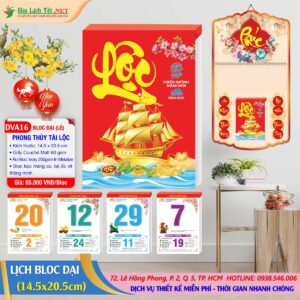 – Bloc đại 14.5×20.5 gắn được bìa lịch đại 40×60, bìa đại lỡ 34x60cm, bìa lò xo giữa 37x70cm